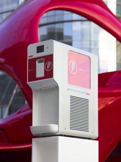 Mario Ugolini, ktorý sa zaujímal o cestovanie a iné kultúry, pochopil výhody vytvorenia „chladičov nápojov“, ktoré videl v Spojených štátoch. Vytvoril prototyp, predstavil ho vo finálnej podobe na Medzinárodnom veľtrhu v Miláne v roku 1966 a okamžite získal objednávku na 100 strojov.